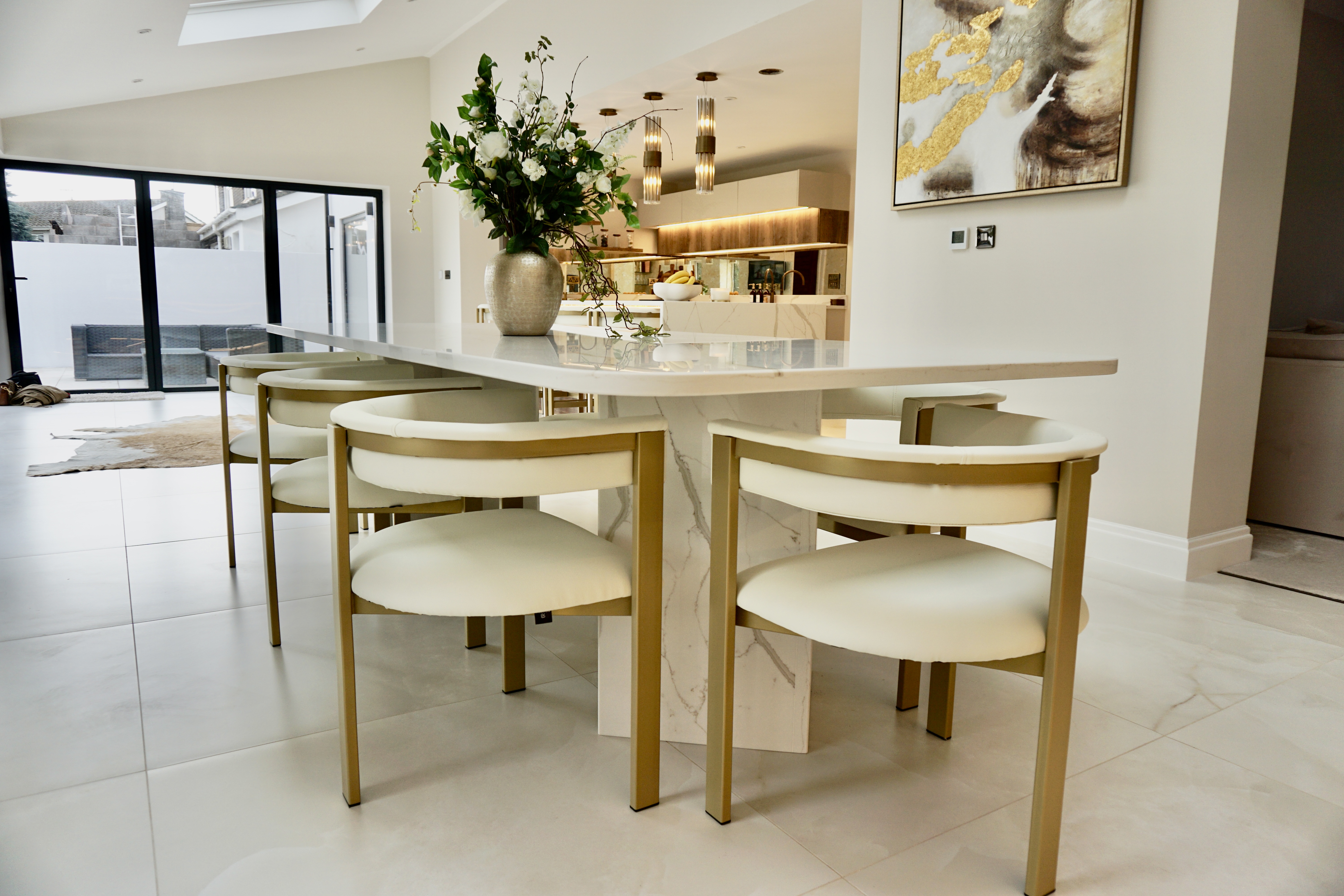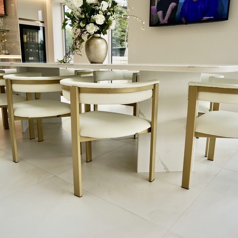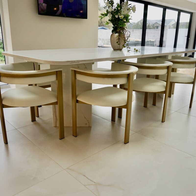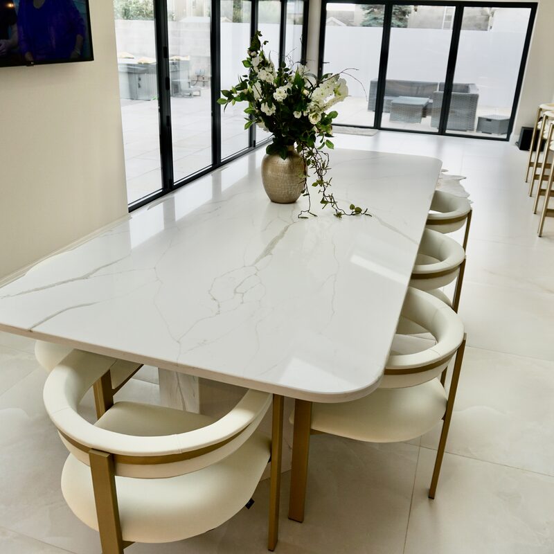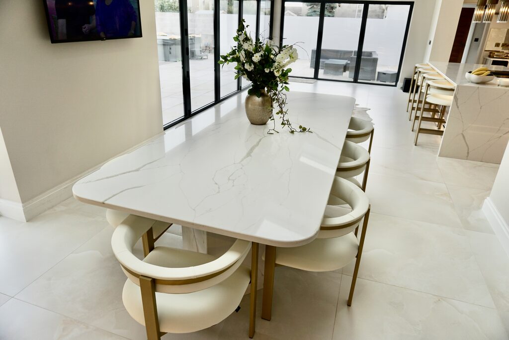 An 8-seater quartz dining table.