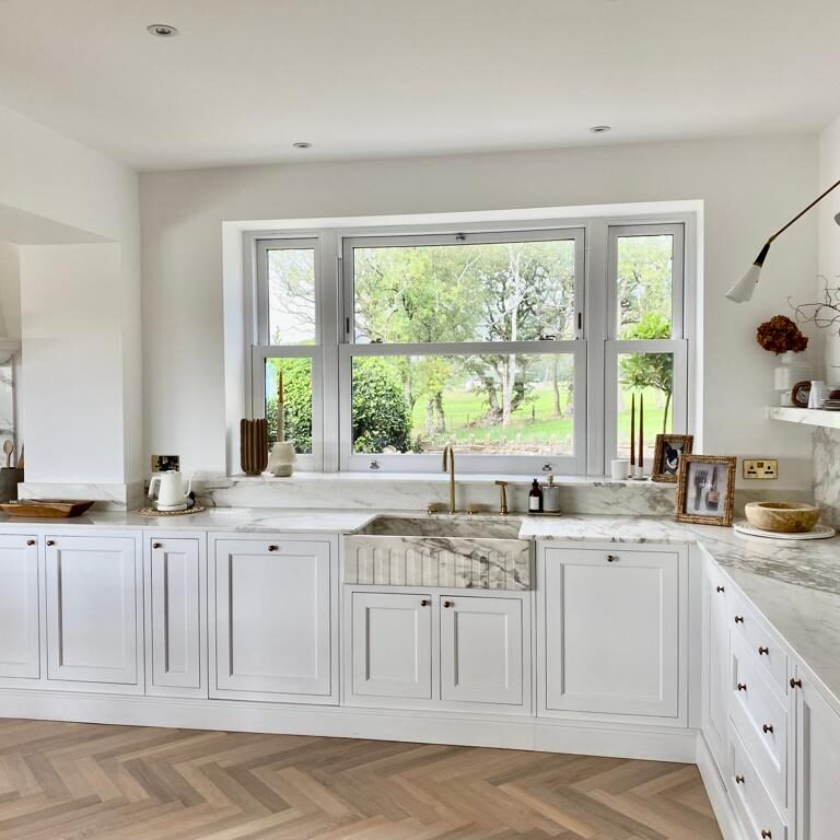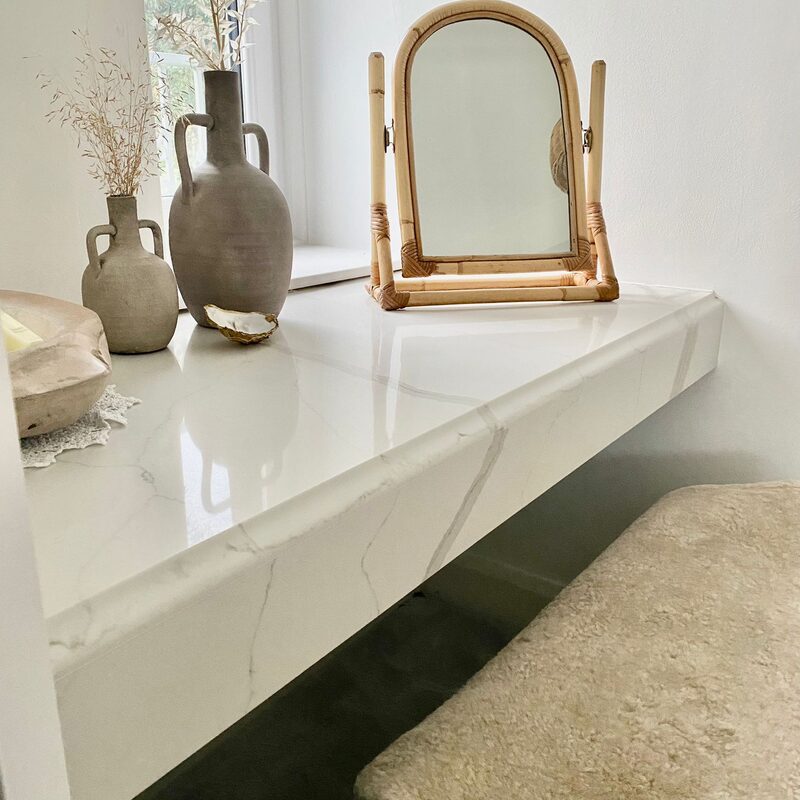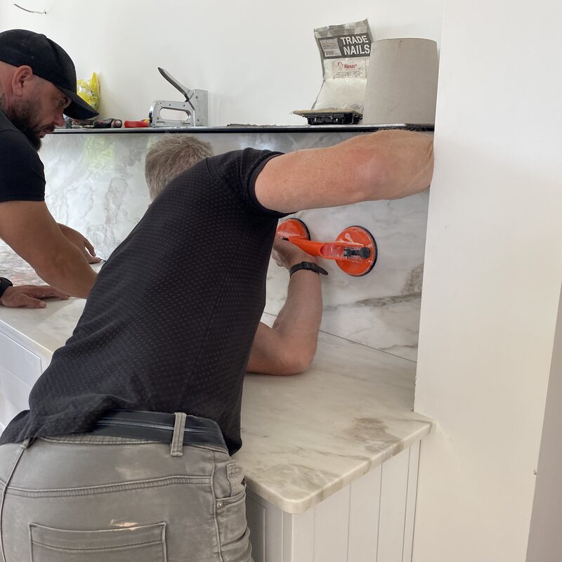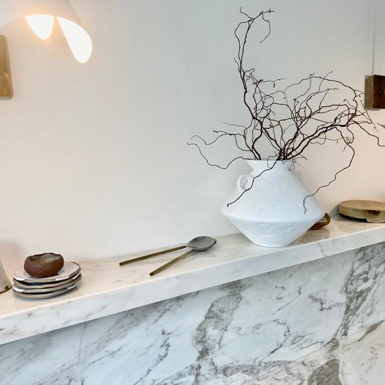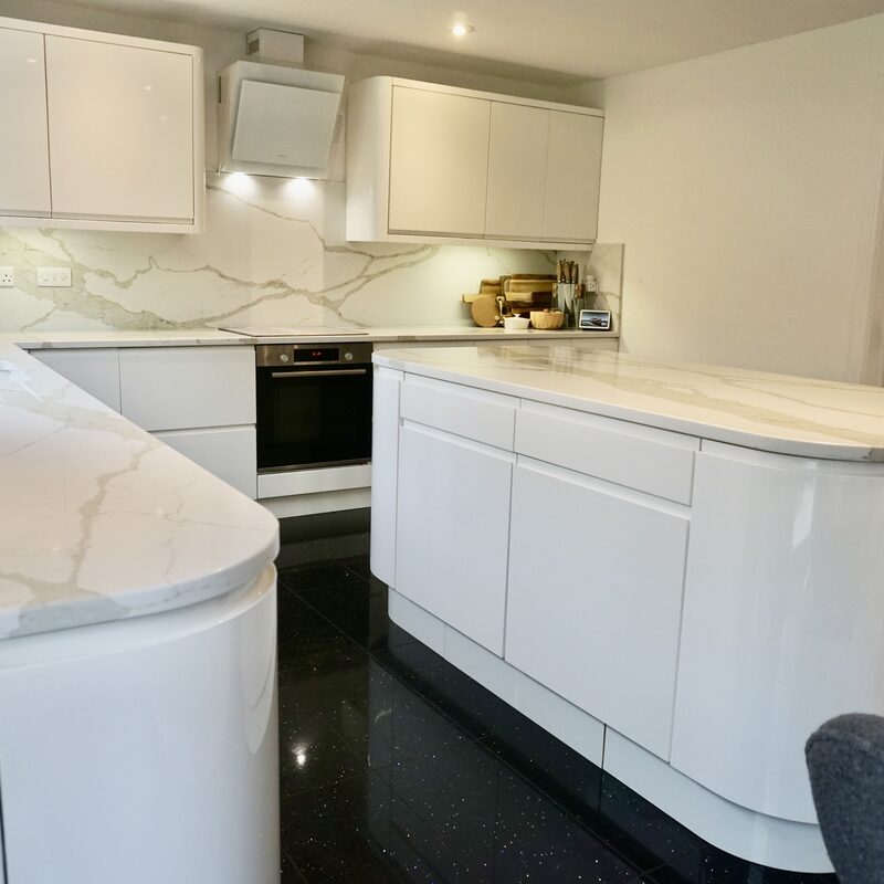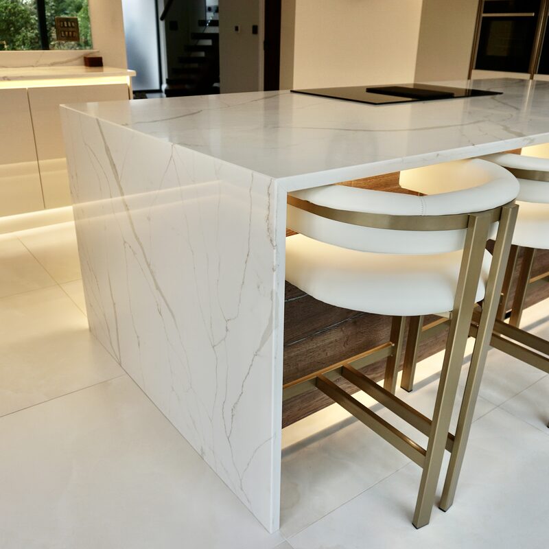 To design, manufacture and fit Calacatta Portugal marble kitchen worktops, bespoke sink and floating shelf.