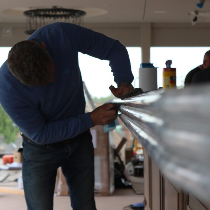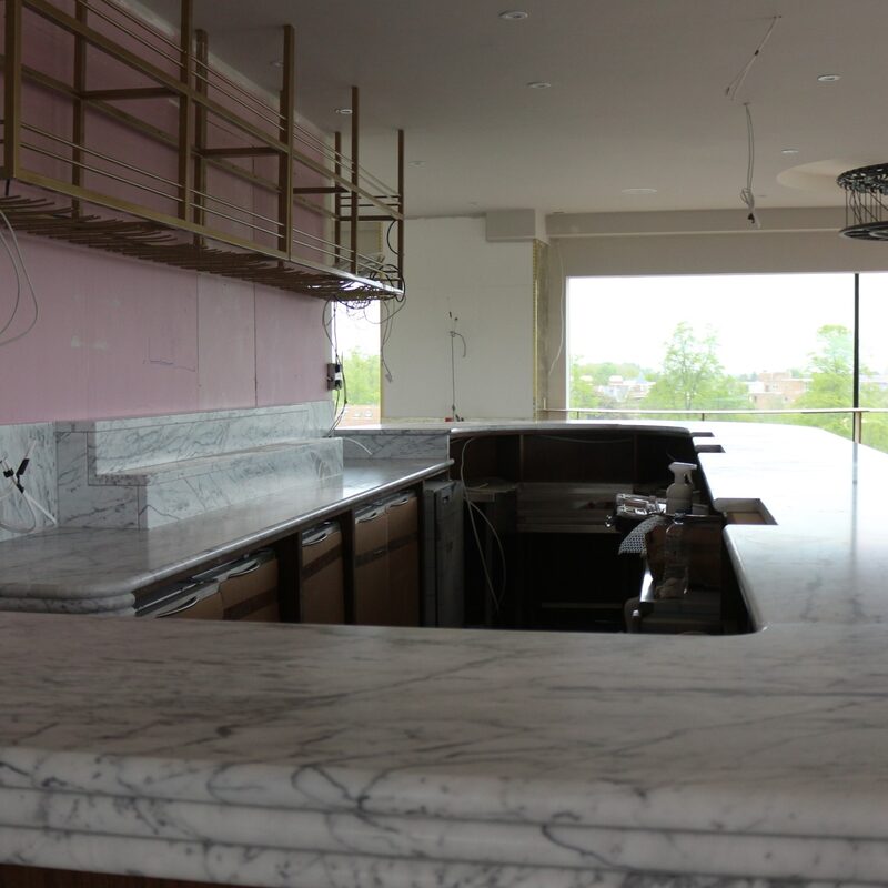 To manufacture a 90mm thick triple bullnose bar top and lift 15 stories in the heart of Cambridge.