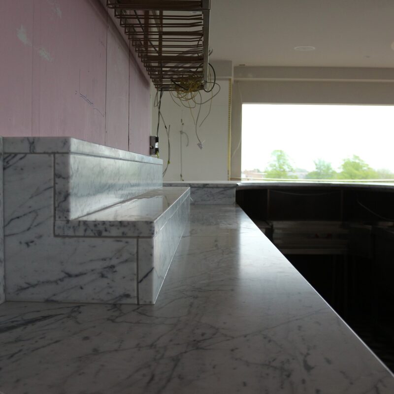 Carrara marble commercial bar top.