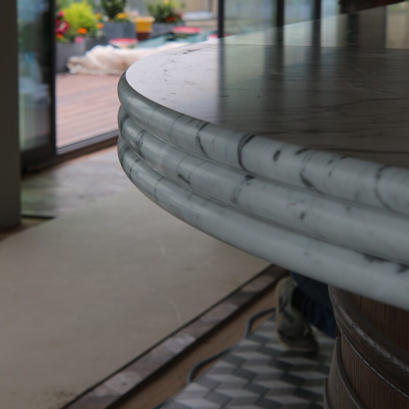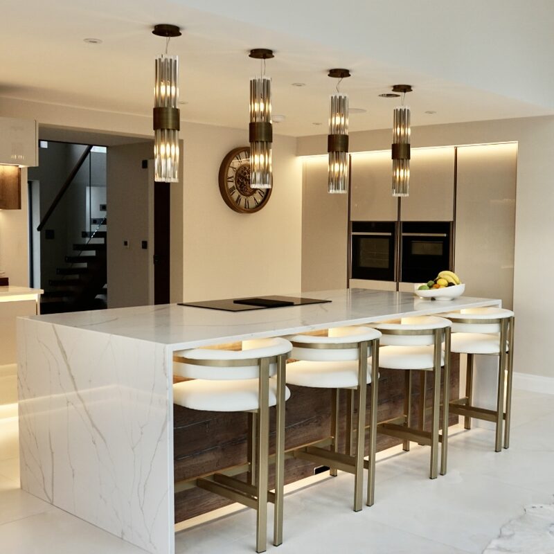 To design and manufacture an 8-seater dining table to compliment the kitchens quartz worktop/ island design.